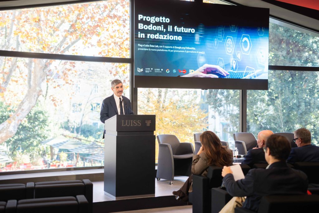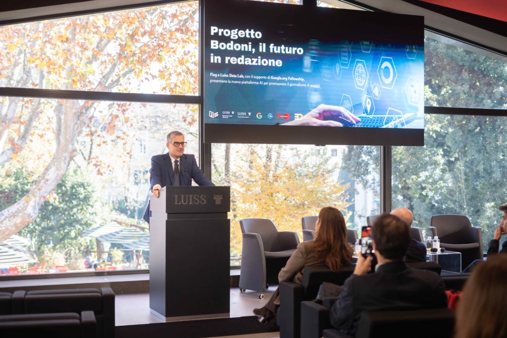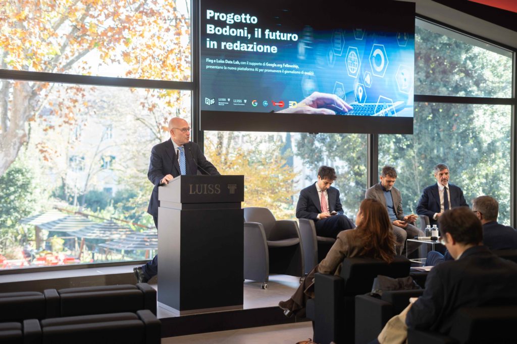 L’evento, ospitato nella Sala The Dome del Campus di Viale Romania, ha riunito rappresentanti delle istituzioni, dell’editoria e della comunità tecnologica, confermando il ruolo strategico di Bodoni nel guidare la trasformazione digitale del settore. Per Luiss, il progetto è coordinato da Gianni Riotta, direttore della Scuola di Giornalismo e del Centro di Ricerca Luiss, e dalla professoressa Livia De Giovanni, Presidente del Data Lab e della Scuola di Giornalismo, nonché Prorettrice per Rankings, Accreditamenti e Qualità dell’Ateneo.